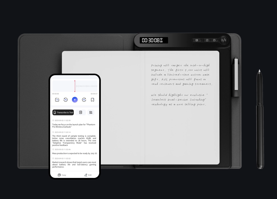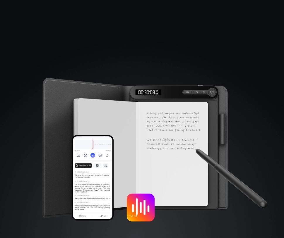 Handwritten notes with crystal-clear audio—never miss a detail.